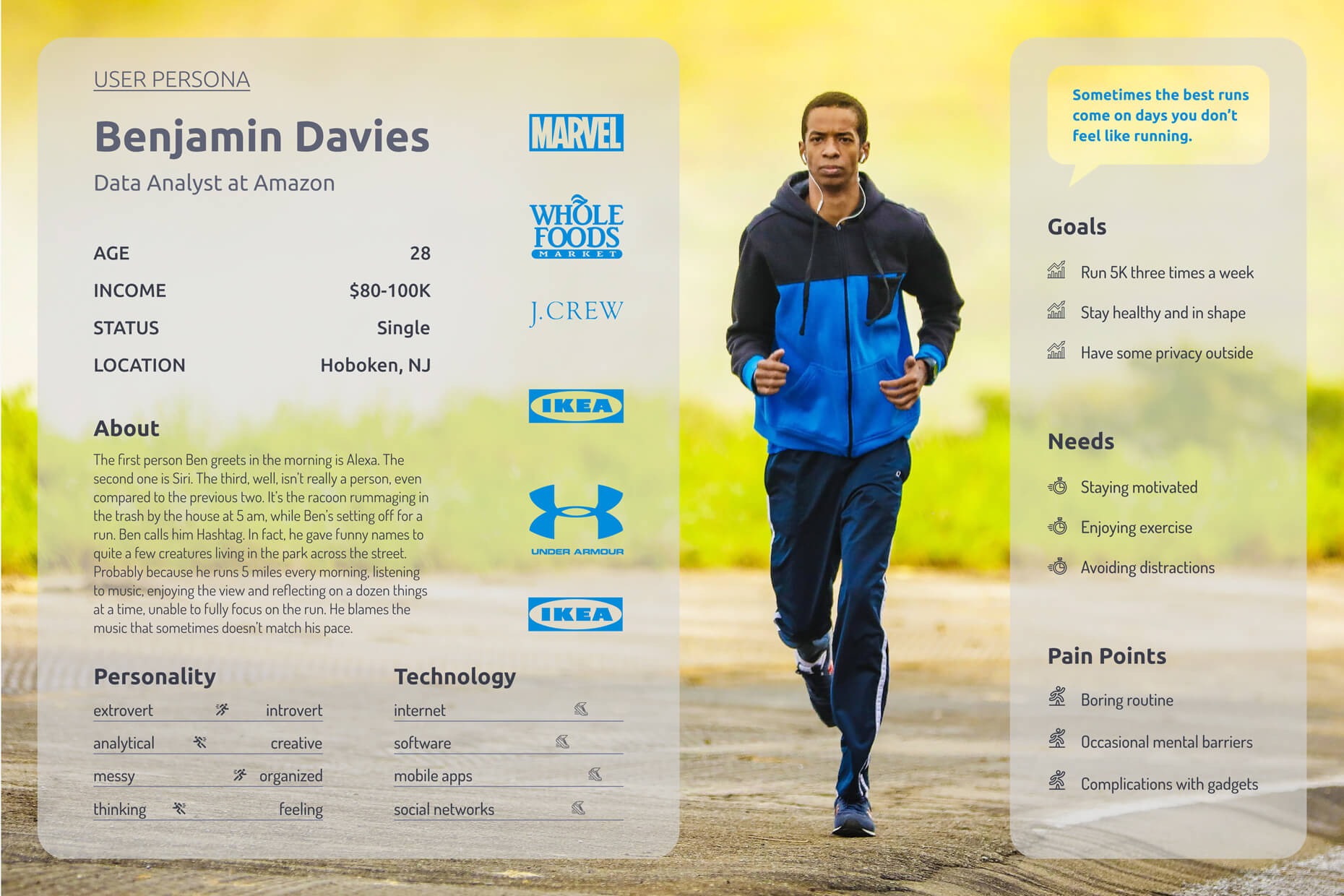 For this project, I decided to conduct a survey because I already new some information about Runkeeper users from Reddit, where, in fact, I recruited participants for my survey. It already proved to be super useful to do research purely online, so that everybody can stay safe during the pandemic. On this project, I interviewed 5 participants, 30-40 years old, male and female, living in New York City.